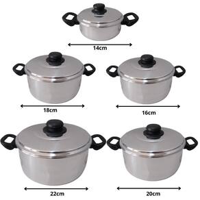 Conjunto com 5 panelas nos tamanhos Nº 22, 20, 18, 16 e 14