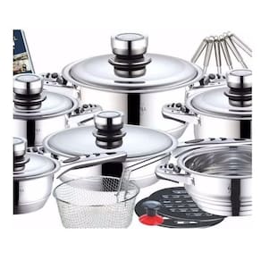 Jogo de Panelas Antiaderente 23 peças Tecnologia ALEMÃ Melhor Panela Do Mundo, PEÇAS Em AÇÕ Cirurgico ALEMÃ. Certificado De Garantia Mundial, Usada Pelos Melhores Chefes De Cozinha Do Mundo. A Dusseldorf Tem Garantia E Acabou De Chegar No Brasil. Oportunidade De Compra Agora Pra Voce Que Quer Ter Uma Comida De Boa Qualidade Com A Melhor Panela Do Mundo. Enviamos Para Todo Brasil.5 Litros Medindo 24CMX14CM Com Tampa02 - 1 CAÇAROLA 3.0 Litros Medindo 20CMX10CM Com Tampa03 - 1 CAÇAROLA 1.6 Litros Medindo 16CMX08CM Com Tampa 04 - 1 Frigideira 3.0 Litros Medindo 24CMX6.5CM Com Tampa 05 - 1 Panela 1.6 Litros Medindo 16CMX09CM Com Tampa06 - 1 Panela Vaporizadora Medindo 20CMX10CM07 - 1 Fritadeira Medindo 18CM Mais, 11 Utencilios Para Cozinha08 - 02 Bakelite Suporte De Panelas09 - 01 Conjuto De ÚTENSILIOS Nylon 6 PEÇAS 10 - 1 BOTÃO SUCÇÃO11 - 1 Livro De Receita Em 3 Linguas ALEMÃO,Russo E INGLÊS 12 - CARTÃO De CERTIFICAÇÃO De FÁBRICA Tampas Com Termometro. Caixa Totalmente Lacrada. Garantia De 12 Meses Contra Defeitos De FABRICAÇÃOPeso: 11.2KG Marca: Sa, Songle, Nakazaki Ou Siga It-Blue