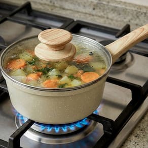 O Conjunto de Panelas Viena Orgânica 5 peças possui 5 mm de espessura na borda e 2,5mm de espessura no seu corpo e no fundo, o que melhora o preparo de seus alimentos, pois a temperatura é dissipada de maneira uniforme e favorece o cozimento, evitando que sua comida queime facilmente.