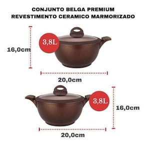 Jogo De Panelas Antiaderente Cerâmica Indução Belga 3Pcs