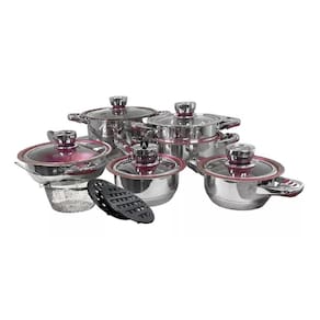 Com capacidade de 5 litros e medindo 24cmx14cm com tampa, esse jogo conta com uma variedade de peças que vão facilitar o preparo das suas refeições. São elas: 1 caçarola de 3.0 litros medindo 20cmx10cm com tampa, 1 caçarola de 1.6 litros medindo 16cmx08cm com tampa, 1 frigideira de 3.0 litros medindo 24cmx6.5cm com tampa, 1 panela de 1.6 litros medindo 16cmx09cm com tampa, 1 panela vaporizadora medindo 20cmx10cm, 1 fritadeira medindo 18cm, além de 11 utensílios para cozinha.