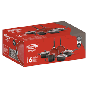 A sua cozinha em outra dimensão com o Jogo de 6 panelas cerâmicas antiaderente Life Easy Brinox. São produtos de alta tecnologia que dão mais possibilidades as suas preparações dignas de masterchef. Mantenha seus pratos preferidos saudáveis e livres de metais pesados prejudiciais à saúde com o Conjunto de panelas Life Easy Brinox com revestimentos internos cerâmicos Pro Ceramic Premium e Mineral Resist que exigem menos óleo no preparo proporcionando uma refeição sempre mais saudável. Com a alta tecnologia aplicada nas panelas, caçarolas e frigideiras, não gruda os alimentos e limpa mais fácil. O conjunto é composto por uma panela com tampa de 16cm de diâmetro por 8,2 cm de altura e capacidade de 1,4L, panela com tampa de 18cm de diâmetro e 9,2 cm de altura com capacidade de 2,1 litros, caçarola com tampa de 20 CM por 9,5 CM com capacidade de 2,55 litros, tapioqueira de 22 cm de diâmetro com capacidade de 0,5 litros, frigideira de 20 cm de diâmetro com capacidade de 0,6 litros e fervedor para 1,24 litros. Versátil as panelas do kit foram projetadas para vários tipos fogões gás, vitrocerâmico e elétrico.