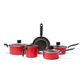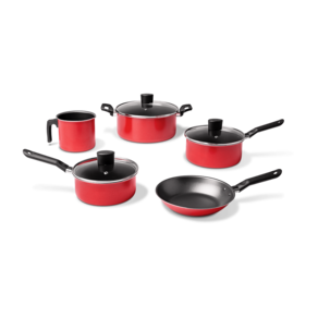 Com estrutura de alumínio que dissipa melhor o calor, cozinhando o alimento por igual, o conjunto de panelas é composto por 5 peças: uma caçarola com tampa 22x10 e 3,4 litros , duas panelas com tampa de 18x8 e 1,75 litro e 16x7 cm e 1,2 litro, uma frigideira de 20x4cm e 0,8 litro e um fervedor de 12x11,5cm e 1,2 litro. O revestimento interno é antiaderente, não deixando o alimento grudar, mesmo com uso reduzido de óleo o que torna a limpeza mais fácil. Os cabos de baquelite não aquecem, tornando o manuseio dos utensílios mais fácil e seguro. As caçarolas e panelas, disponíveis na cor vermelho, ainda possuem tampa de vidro temperado com saída para o vapor. O ciclo de vida do produto pode variar conforme frequência e intensidade da utilização. O produto deve ser descartado (livre de materiais orgânicos) em coletores de resíduos seletivos. A logística reversa não é aplicável.