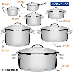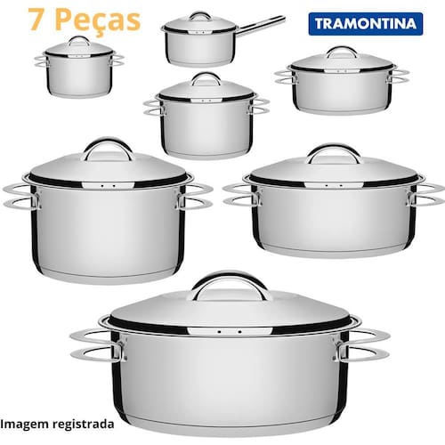Você está adquirindo um jogo de panelas linha solar tramontina. Durabilidade, praticidade, fácil uso, aço inox, fundo triplo;