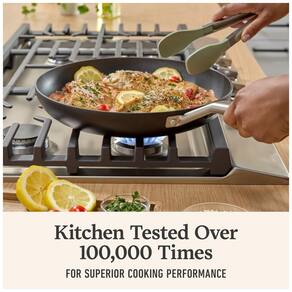 Concebido com durabilidade e versatilidade em mente, este conjunto de panelas Calphalon HardAnodized Antiaderente eleva a culinária do dia a dia. Testada na cozinha mais de 100.000 vezes, esta frigideira oferece um desempenho culinário superior no qual você pode confiar a cada refeição. Experimente utensílios de cozinha que trazem mais do que comida para a mesa, proporcionando aquecimento uniforme e seguro no forno a até 232°C, liberação de alimentos fácil e segura, e limpeza sem esforço na lava-louças. Projetada para empoderar a confiança na cozinha, com tecnologia antiaderente duradoura e uma alça de aço inoxidável que permanece fria no fogão. Um item essencial de cozinha para todo chef caseiro, esta panela é ideal para pochar peixes, fritar bifes, fazer molhos e muito mais. Testada na Cozinha Mais de 100.000 Vezes - Desempenho culinário superior respaldado por testes rigorosos de durabilidade. Lava-louças Seguro - Para uma limpeza sem esforço, a frigideira e a tampa são seguras para lava-louças. Construção em Alumínio HardAnodized - Proporciona aquecimento rápido e uniforme para resultados de cocção precisos. Alças que Permanecem Frias - As longas alças de aço inoxidável permanecem frias nos fogões. Seguro para Forno até 232°C - Vai do fogão para o forno com facilidade. Tecnologia Antiaderente Avançada - Mantém as panelas com desempenho de novas. Inclui Frigideira com tampa de vidro temperado. Compatível com Fogão Elétrico, de Vidro e a Gás - Utensílios de cozinha versáteis para uso em todas as cozinhas.