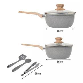 Com um design elegante na tonalidade cinza, este conjunto combina beleza e funcionalidade, elevando o nível das suas preparações culinárias.Resistente e eficiente, esse conjunto é ideal para quem valoriza desempenho e beleza na cozinha.