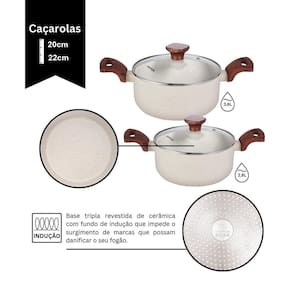 - prático: as panelas do conjunto funcionam em fogões a gás em fogo baixo , elétrico, vitrocerâmico e de indução. Seu material permite a condução rápida e eficiente do calor, sendo a temperatura baixa ou média suficiente para cozinhar os alimentos, reduzindo o consumo de gás e energia.