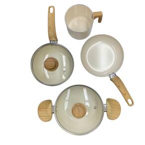 Marca: alumínio nacional Material do revestimento interno: cerâmica premium gold antiaderente Material do corpo: alumínio de alta qualidade Material das alças/cabos: madeira ergonômica Cor: gold com vanilha