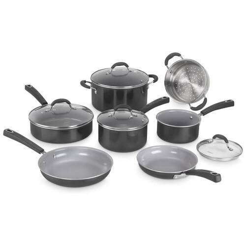 Este conjunto de panelas antiaderentes Cuisinart é perfeito para cozinhar uma ampla variedade de alimentos. Inclui quatro panelas com tampa - 1,4 litros, 2,33 litros, 5,6 litros - e duas frigideiras de 20 cm e 25 cm, além de um acessório para cozimento a vapor de 18 cm. Com essas opções, você pode ferver, refogar, fritar, cozinhar a vapor e muito mais.