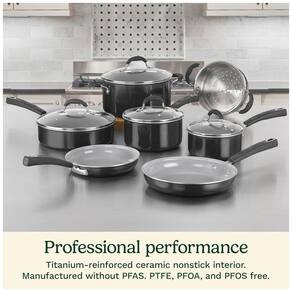 O interior antiaderente CeramicaXT é reforçado com titânio para maior liberação dos alimentos e durabilidade, sem manchas nem descoloração. As bordas cônicas facilitam o serviço limpo e preciso, enquanto a tampa Flavor Lock ajuda a reter o sabor e os nutrientes durante o cozimento.