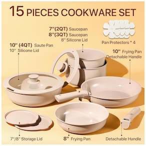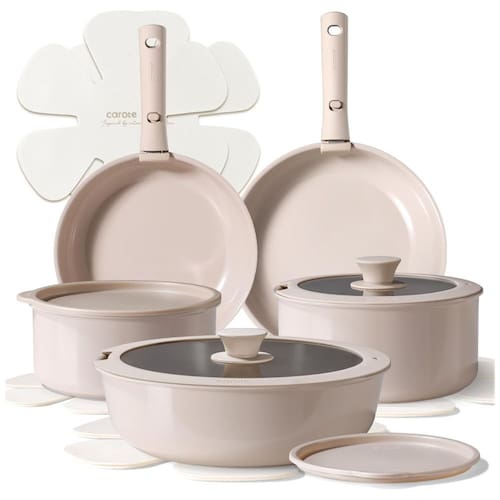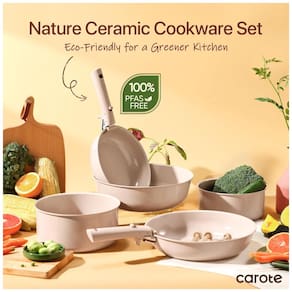Este conjunto de panelas é fabricado com cerâmica natural de alta qualidade, garantindo excelente desempenho antiaderente, liberando os alimentos facilmente e proporcionando uma culinária mais saudável. O revestimento cerâmico avançado foi projetado para uma durabilidade superior, com resistência a riscos e manchas, mantendo suas panelas em ótimo estado ao longo do tempo. Livre de PFOA, PTFE, PFAS, grafite e cádmio, este conjunto é 100% atóxico para garantir segurança durante o cozimento. Compatível com fogão a gás, elétrico, indução e forno, as panelas CAROTE são versáteis e práticas. O jogo inclui frigideiras, panelas, frigideira, tampas de silicone e de armazenamento, alças removíveis e protetores de panela.