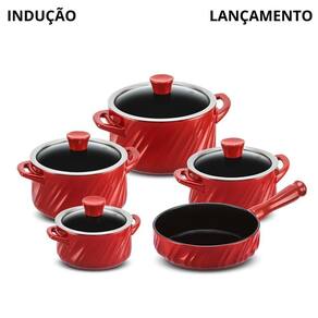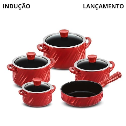 Jogo de Panelas de Cerâmica Twist Indução Pomodoro Ceraflame Marca: Ceraflame. Modelo: Twist Indução Cor: Vermelho Pomodoro. Contém: 01 Caçarola de 14cm 0,9 litros com tampa de vidro. 01 Caçarola de 16cm 1,5 litros com tampa de vidro. 01 Caçarola de 18cm 2,0 litros com tampa de vidro. 01 Caçarola de 20cm 3,0 litros com tampa de vidro. 01 Frigideira de 20cm 1,0 litro sem tampa. Material: Cerâmica refratária. -pode ser levado a fogão elétrico e indução. -pode ser levado a fogão à lenha. -pode ser levado ao micro-ondas. sem tampa . -pode ser levado a máquina de lavar louças. -pode ser levado a forno elétrico. sem tampa . -pode ser levado a fogão a gás. -pode ser levado a geladeira e freezer.
