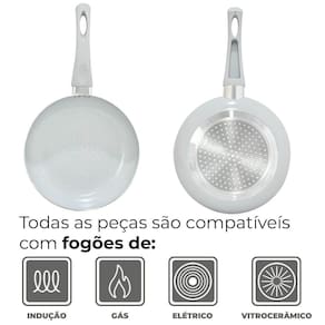 O kit de panelas é indicado para todos os fogões, sejam eles a gás, indução, vitrocerâmico ou elétrico.