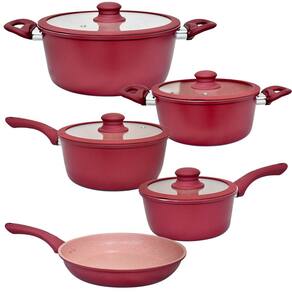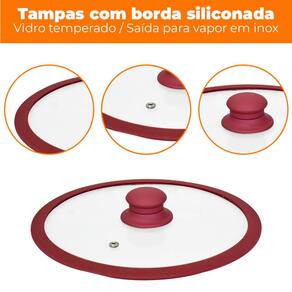 Características: Marca: Vista Home Referência: VH6001 Modelo: Siena Material da Panela: Alumínio Material do Cabo: Baquelite Soft-touch Material da Tampa: Vidro Temperado com borda em silicone Espessura: 2,5mm Cor: Vinho Quantidade: 5 peças