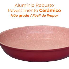 O revestimento interno em cerâmica rosa é o grande diferencial: além de lindo, proporciona cozimento uniforme, facilidade na limpeza e menor necessidade de óleo, tornando suas refeições mais saudáveis. A espessura reforçada de 4,5mm na borda e 2,5mm no corpo garante robustez e longa durabilidade.