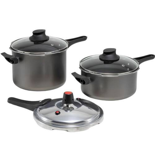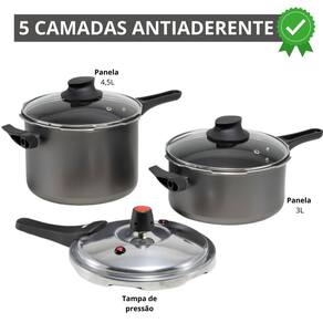 Jogo de Panelas 2 em 1 Fechamento Externo e Tampa de Vidro Marcolar A Panela Antiaderente com Fechamento Externo da Marcolar é a solução ideal para quem busca praticidade na cozinha, permitindo preparar refeições saborosas de maneira rápida e eficiente. Essa panela oferece conveniência incomparável. Com duas opções de tampas, você pode cozinhar com a tampa e, logo em seguida, trocar para a tampa de vidro e levar a panela diretamente à mesa. Economize tempo e reduza o número de louças a serem lavadas, sem abrir mão de um design sofisticado. Além disso, o fechamento externo proporciona maior segurança e facilidade no manuseio, enquanto as tampas de vidro temperado com saída de vapor asseguram um cozimento uniforme. DIFERENCIAIS - Fechamento Externo: Mais seguro e fácil de manusear, oferecendo um uso prático no dia a dia. - Revestimento Antiaderente: Evita que os alimentos grudem, facilitando tanto o preparo quanto a limpeza. - Tampas de Vidro: Duas tampas com saída de vapor para servir diretamente à mesa sem perder o calor dos alimentos. ESPECIFICAÇÕES TÉCNICAS Material: Alumínio Cor: Preto Compatibilidade: Ideal para fogões a gás ITENS INCLUSOS 01 Panela 4,5L 01 Panela 3L 02 Tampas de Vidro Leve a praticidade e qualidade Marcolar para sua cozinha e transforme suas refeições Marca: Não Informado