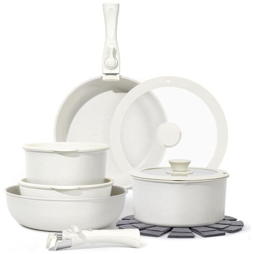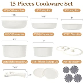 Jogo de Panelas e Frigideiras Antiaderentes em Granito com 15 Peças e Cabo Removível, SODAY, Branco