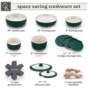 Organização Perfeita: Com nosso conjunto de utensílios de cozinha empilháveis e alça removível, você poderá organizar seus armários de forma eficiente, sem abrir mão dos itens essenciais para o preparo das suas receitas. Versatilidade Máxima: As alças removíveis garantem total flexibilidade, permitindo que você transfira os utensílios com facilidade entre o fogão, o forno, a mesa e a geladeira. Revestimento Antiaderente de Granito Seguro e Exclusivo: Nossa tecnologia patenteada oferece um revestimento antiaderente de granito livre de substâncias químicas prejudiciais, como PFOS e PFOA, proporcionando segurança e durabilidade no uso diário. Resistência ao Forno: Os utensílios podem ser levados ao forno em temperaturas de até 250°C, ampliando suas possibilidades na cozinha, seja para assar ou gratinar, e facilitando a limpeza.