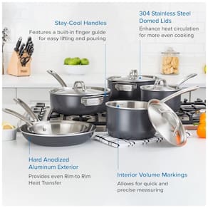Quatro camadas externas de alumínio proporcionam ótima transferência de calor para um cozimento uniforme Forno, grelha e grelha s até 500F, 260C e para uso em todos os cooktops, incluindo indução