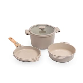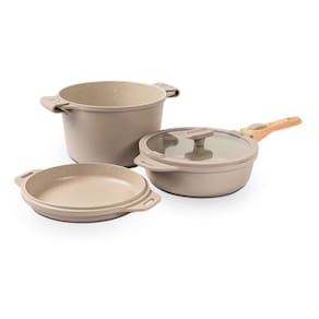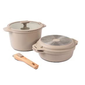 JOGO DE PANELAS 7 PEÇAS CERAMIC LIFE LOFT AREIA: PRATICIDADE, DESIGN E TECNOLOGIA PARA A SUA COZINHA Funcionalidade, beleza e inovação se encontram no Jogo de Panelas 7 Peças Ceramic Life Loft Areia. Projetado para tornar sua rotina na cozinha mais eficiente, este conjunto reúne design moderno com tecnologia que transforma a forma como você armazena e utiliza seus utensílios. Com estrutura pensada para o dia a dia, as peças otimizam espaço com o sistema inteligente de encaixe, permitindo empilhar com segurança e organização graças ao cabo removível. Ideal para quem busca praticidade sem abrir mão de sofisticação. DIFERENCIAIS QUE TRANSFORMAM SUA ROTINA O cabo removível com acabamento soft touch amadeirado garante conforto térmico e permite o uso das panelas também no forno. O revestimento interno varia de acordo com a peça: a caçarola conta com o Pro Ceramic Premium, um revestimento cerâmico antiaderente de alta performance, enquanto as frigideiras utilizam o Mineral Resist, que garante resistência, facilidade na limpeza e preparo com menos óleo. O fundo torna as peças compatíveis com todos os tipos de fogões: gás, elétrico, vitrocerâmico e indução. Já a tampa flat de vidro temperado com pomel e borda de silicone garante vedação eficiente, controle de vapor e encaixe silencioso.Os pegadores em silicone também acompanham o kit e são perfeitos para manusear as panelas com segurança, sem risco de aquecimento. Este é o conjunto ideal para quem deseja praticidade, eficiência térmica, fácil armazenamento e um visual moderno na cozinha. Torne sua rotina mais leve e seu ambiente ainda mais bonito com o Jogo de Panelas 7 Peças Ceramic Life Loft Areia. Invista em qualidade, versatilidade e bom gosto.