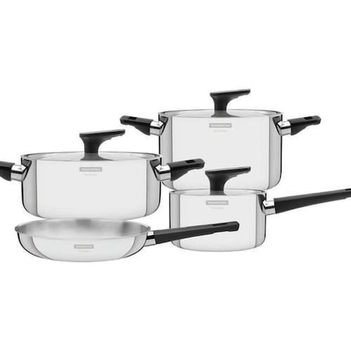 O Jogo De Panelas Grano Baquelite Tramontina 4 Peças é ideal para completar a sua cozinha com itens que deixaram sua rotina mais prática. As panelas Tramontina são produzidas com materiais de excelente qualidade, pensando sempre na saúde e bem estar da sua família.________________Jogo de Panelas Grano Baquelite Tramontina com Corpo Triplo Cabos e Alças 4 PeçasDescrição:Produzidas com a durabilidade do aço inox, não soltam resíduos, além de possuírem corpo triplo (aço inox + Alumínio + aço inox), que distribui o calor uniformemente, proporcionando um cozimento mais rápido. Por isso, você pode manter o fogo baixo durante todo o preparo e, assim, poupar energia. O jogo ainda proporciona um manuseio mais confortável por possuir cabos e pegadores em baquelite, antitérmico que não aquece. Podem ser usadas em fogões a gás, elétrico, vitrocerâmico e indução.Composição:1 - Caçarola Rasa Tramontina Grano Baquelite em Aço Inox com Corpo Triplo (Código 62163240).1 Caçarola Tramontina Grano Baquelite Funda em Aço Inox Fundo Triplo (Código 62164200).1 Frigideira Tramontina Grano Baquelite em Aço Inox com Corpo Triplo (Código 62175260) .1 Panela Tramontina Grano Baquelite em Aço Inox com Corpo Triplo (Código 62161160).Como usar o produtoUse uma fonte de calor brando para evitar que o alimento grude no fundo da caçarola. O fundo triplo distribui uniformemente o calor, não sendo necessário o fogo alto. E, além disso, você economiza energia.Quando a caçarola for utilizada no fogão a gás, a chama não deve ultrapassar a base da caçarola. No caso de uso de chapa elétrica, a chapa deverá ter diâmetro igual ou inferior ao da caçarola.Não aqueça o alimento colocando uma caçarola do mesmo diâmetro sobre a outra. Esse procedimento é perigoso, pois cria vácuo e impossibilita a retirada do mesma.Se a tampa da caçarola de aço inox Tramontina ficar presa pelo efeito do vácuo durante o resfriamento, basta puxar ou aquecer novamente até neutralizar o efeito do vácuo.As alças de inox aquecem durante o cozimento. Aconselhamos o uso de luvas durante o manuseio.Alguns alimentos que possuem amido poderão deixar manchas na parte interna da caçarola durante o cozimento. Para remover facilmente as manchas, passe um pano umedecido com suco de limão ou vinagre, ou use a Pasta para Polir e Remover Manchas Tramontina. Não deixe a caçarola vazia sobre uma fonte de calor. Deixe caçarolas quentes somente em superfícies resistentes ao calor.Descrição técnica:Por ser feita de aço inoxidável, a panela Tramontina não libera nenhum tipo de resíduo nas suas receitas.Pode ser usada em qualquer tipo de fogão: gás, elétrico, vitrocerâmico e indução. Ainda possui tampa com saída de vapor e encaixe perfeito. Cabo e pegador em baquelite, não aquecem, com protetor de chamas, evitando que queimem quando a chama não estiver centralizada no fundo da panela.Economiza tempo e energia: o segredo está no corpo triplo (aço inox + Alumínio + aço inox), que distribui o calor uniformemente, proporcionando um cozimento mais rápido. Especificação técnica:EAN13: 7891116161234DUN14: 17891116161231NCM: 7323.93.00Peso Líquido: 5,7800 kg.Peso Bruto: 6,8650 kg.Metragem: 0,036281 m³.Sobre a TramontinaA Tramontina é reconhecida como referência de qualidade em mais de 120 países, apoiando na inovação, no design, na tecnologia e no valor do capital humano para cumprir uma missão indelegável: gerar valor ao consumidor nas mais diversas fronteiras, culturas, épocas e ocasiões.