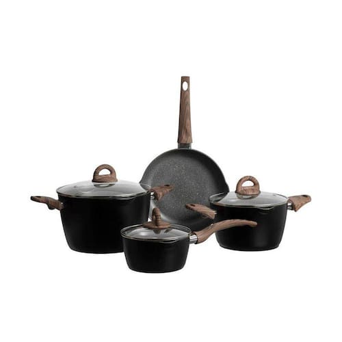 Para pratos rápidos e saborosos, o Jogo de Frigideiras Jungle 4 Peças é impecável em fritar, refogar e passar alimentos. Sua estrutura em alumínio mantém o calor interno, enquanto a base de indução em aço inox permite utilizar diferentes fontes de calor e protege a frigideira contra deformações. Conta com cabo em baquelite com acabamento soft touch com acabamento em madeira.
