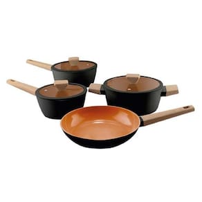 - Material: Alumínio com Revestimento Cerâmico - Tampa de Vidro com saída de vapor - Cabos com acabamento soft touch - Cor: Preto e terracota - Tipo de Embalagem: caixa - Uso indicado em: Fogão convencional, Fogão de indução, vitrocerâmico e elétrico. - Uso não indicado: máquina de lavar louça - Marca: Fracalanza