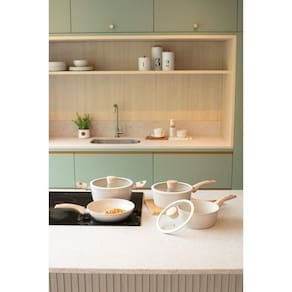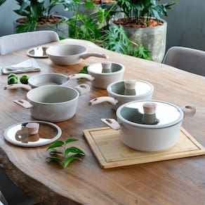 Jogo de Panelas Indução 6 Peças Vanilla em Alumínio e Revestimento Cerâmico Antiaderente Sirius Brinox - Na sua casa