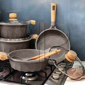 Os conjuntos de Panelas, Caçarolas e Frigideiras da COOKLOVER - MGC são projetadas com a mais moderna tecnologia, para transformar o cozinhar do dia-a-dia em uma experiência. O revestimento antiaderente em granito cerâmico stone é um novo revestimento baseado na cor e textura do granito real, com vantagens que incluem alta resistência ao desgaste e boa impermeabilidade. O revestimento de granito antiaderente de alta performance facilita a cozedura e a limpeza, além de não agredir o meio ambiente.