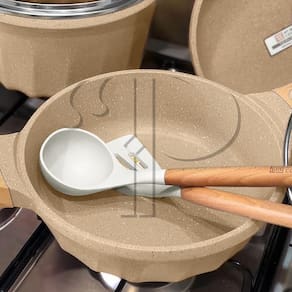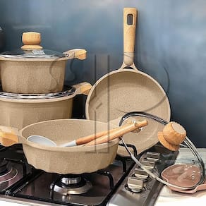 Os conjuntos de Panelas, Caçarolas e Frigideiras da COOKLOVER - MGC são projetadas com a mais moderna tecnologia, para transformar o cozinhar do dia-a-dia em uma experiência. O revestimento antiaderente em granito cerâmico stone é um novo revestimento baseado na cor e textura do granito real, com vantagens que incluem alta resistência ao desgaste e boa impermeabilidade. O revestimento de granito antiaderente de alta performance facilita a cozedura e a limpeza, além de não agredir o meio ambiente.