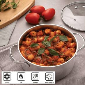Cozinhar é um dos prazeres da vida, mas saborear pratos com aroma e sabor incomparáveis é melhor ainda E para que isso seja possível, a Tramontina lança o Jogo de Panelas Tramontina Una em Aço Inox com Fundo Triplo e Tampas de Vidro 3 Peças. Todas as peças são produzidas em aço inox com acabamento alto brilho e fundo triplo aço inox + alumínio + aço inox , que distribui o calor uniformemente, proporcionando um cozimento mais rápido e uniforme, economizando energia e deixando os alimentos aquecidos por mais tempo. Possuem tampa de vidro com saída de vapor e encaixe perfeito, e podem ser lavadas diariamente na máquina de lavar louças. Tenha produtos Tramontina e garanta satisfação nos momentos na cozinha Informações Gerais Mais saudável: por ser feita de aço inoxidável, a caçarola Tramontina não libera nenhum tipo de resíduo nas suas receitas. Fácil de usar: uma caçarola prática para todas as suas receitas e que faz bonito em qualquer tipo de fogão: gás, elétrico, vitrocerâmico e indução. Tampa de vidro com saída de vapor e encaixe perfeito. Mais durável: o inox Tramontina é uma matéria-prima nobre, resistente e que vai fazer bonito por muito mais tempo na cozinha. Economiza tempo e energia: o segredo está no fundo triplo aço inox + alumínio + aço inox , que distribui o calor uniformemente, proporcionando um cozimento mais rápido. Por isso, você pode manter o fogo baixo durante todo o preparo e, assim, poupar energia. Fácil de limpar: deixar sua caçarola brilhando é simples, você só precisa de água, sabão e uma esponja macia. Se preferir, é só colocar na máquina de lavar.