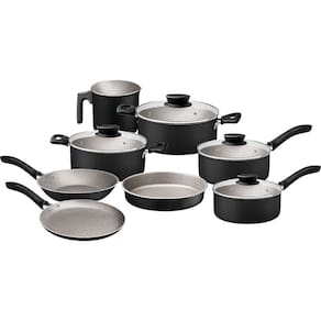 com fogoes a gas, eletricos e vitroceramicos, o conjunto pode ser lavado na maquina de lavar loucas, tornando o preparo das refeicoes ainda mais pratico.
