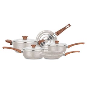 Diametro: 22 cm Dimensoes Frigideira I: Altura: 8 cm Diametro: 23 cm Dimensoes Frigideira II: Altura: 8 cm Diametro: 25 cm Itens Inclusos: 1 cacarola 2 panelas 2 frigideiras 3 tampas