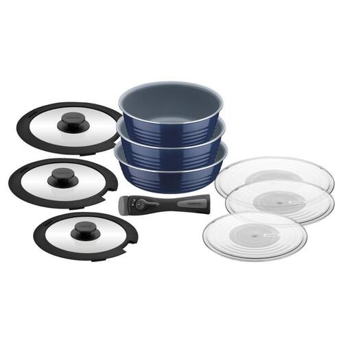 Jogo de Panelas Multiuso Tramontina Itria em Aluminio com Revestimento Ceramico e Cabo Removivel Azul 10 Peças