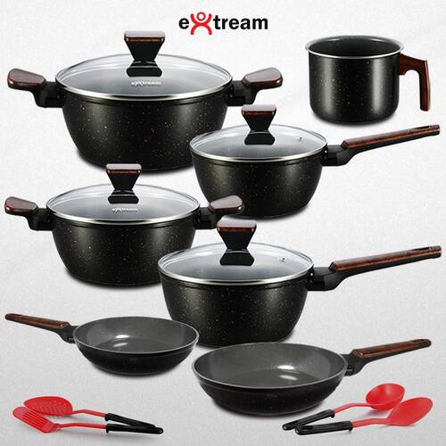 - Kit Completo com 11 Peças Inclui frigideiras, caçarolas, panelas, leiteira e utensílios essenciais para qualquer cozinha.