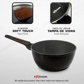 - Alumínio Forjado de Alta Performance Distribui o calor de maneira uniforme, garantindo um cozimento rápido e eficiente.