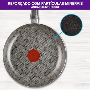 Antiaderente Resist: Limpa fácil e dura mais, reforçado com partículas minerais. Thermo-Sinal: Muda de cor indicando o momento ideal para selar o seu alimento. Base Limpa Fácil: Não mancha, não gruda e é fácil de limpar. Cabos reforçados: mais segurança e conforto.