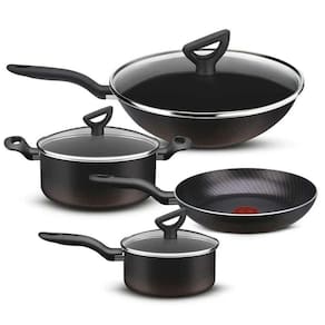 Jogo De Panelas Rochedo Inova Antiaderente 4 Peças Preto A tampa apoio fácil, mais do que uma tampa, um suporte para não sujar sua cozinha O jogo de panelas Rochedo inova antiaderente contém: 01 Panela Wok 28cm 01 Frigideira 25cm 01 Caçarola 24cm 01 Panela 18cm Especificações: -marca: Rochedo -antiaderente Thermo-Sinal: Sim -cor: Preto -O jogo contém: 4 peças -: 3 meses -código Universal do Produto: 7896075033448 Marca: Não Informado