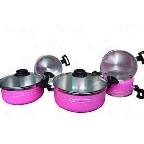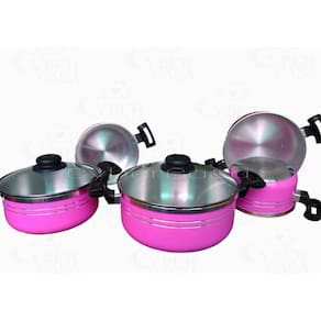 Jogo de Panelas Rosa C Tampa de Vidro Sublime Luxxo Rosa 5Pç Jogo de Panelas Alumínio com Tampa de Vidro Temperado Sublime Luxxo: Elegância e Durabilidade em sua Cozinha Renove sua cozinha com o refinado Jogo de Panelas Luxxo, que alia robustez e requinte para proporcionar um ambiente charmoso e prático. Principais Características: - Fabricadas em alumínio EXTRA FORTE com 2,5mm de espessura, garantindo resistência e durabilidade excepcionais. - Detalhes encantadores incluem a tampa de vidro temperado, alças ergonômicas e pegadores de baquelite antitérmico, proporcionando segurança e conforto durante o manuseio. - Revestimento com tecnologia eletrostática para preservar a cor vibrante por mais tempo, aliado a um acabamento interno e externo primoroso. - de qualidade assegura que não grudam, não entortam, não amassam e não enferrujam. Conjunto composto por 5 panelas de diferentes tamanhos, oferecendo ampla capacidade e versatilidade. Itens da Embalagem: - 5 Panelas super resistentes. - 5 Parafusos. - 5 Tampas de vidro temperado. Medidas das Panelas: - 16 x 10 cm - 1,9 Litros. - 18 x 08 cm - 2,2 Litros. - 20 x 08 cm - 2,6Litros. - 22 x 10 cm - 3,5 Litros. - 24 x 11 cm - 4,9 Litros. Toque de Requinte e Sofisticação: - Eleve o nível de sua cozinha com este jogo de panelas que une elegância e funcionalidade. Fotos Reais das Panelas: - Todas as imagens são reais, garantindo total transparência sobre o produto que irá receber. Marca: Não Informado