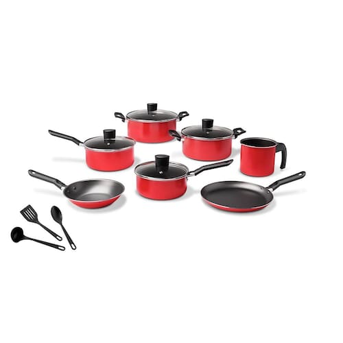 Itens inclusos no conjunto: 2 Caçarolas com tampas de vidro temperado, 2 Panelas com tampas de vidro temperado, 2 Frigideiras, 1 Fervedor 12cm e 3 Utensílios de nylon (ideal para não riscar suas panelas).