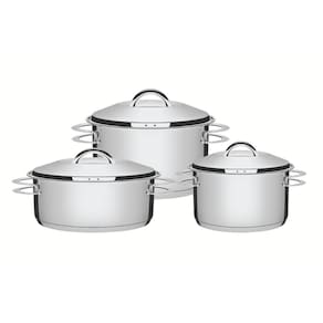 Panela certa é que faz comida boa. O Jogo de Panelas Tramontina Solar em Aço Inox com Fundo Triplo 3 Peças pode ir ao forno para gratinar ou finalizar pratos, na temperatura máxima de 260°C. São três caçarolas de desenho limpo e sem cantos, o que torna a limpeza mais fácil. Um clássico da Tramontina, a linha Solar é símbolo de durabilidade e praticidade. Totalmente feitas em aço inox, por isso não soltam nenhum resíduo nos alimentos, mantendo-os saudáveis. O fundo triplo (aço inox + alumínio + aço inox) distribui o calor uniformemente, proporcionando um cozimento mais rápido e uniforme, economizando energia e deixando os alimentos aquecidos por mais tempo.