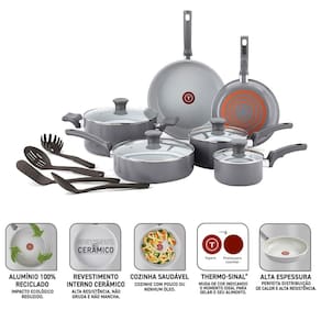 O Jogo de Panelas Cinza Recycled Ceramic Tefal de 10 Peças oferece qualidade, sustentabilidade e praticidade em um único conjunto. Com o revestimento antiaderente cerâmico avançado e a tecnologia Thermo-Sinal, você terá resultados incríveis em todas as suas preparações culinárias. A composição diversificada do conjunto oferece opções versáteis para todas as suas necessidades. E, claro, a compatibilidade com lava-louças garante uma limpeza fácil e sem esforço.