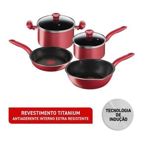 Descrição: Jogo de Panelas Tefal So Chef 4 Peças - Experiência culinária superior com tecnologia premium! Este conjunto em alumínio possui revestimento antiaderente Titanium, duas vezes mais durável, e fundo triplo compatível com indução para distribuição uniforme de calor. A exclusiva tecnologia Thermo-Sinal® indica visualmente o momento ideal para selar os alimentos, preservando sabor e nutrientes. Perfeito para quem busca durabilidade, praticidade e resultados profissionais.