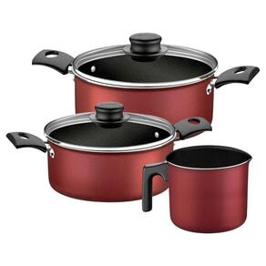 Seja qual for a receita que você vai preparar, é essencial contar com itens de qualidade, como o jogo de panelas Tramontina Turim em alumínio com revestimento interno e externo em antiaderente Starflon Max vermelho 10 peças.