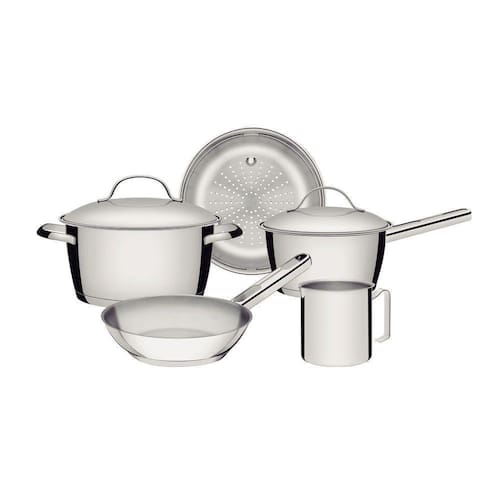 Tenha produtos práticos e diferenciados na sua cozinha. O Jogo de Panelas Tramontina Allegra em Aço Inox com Fundo Triplo 5 Peças facilita seu dia-a-dia e ainda embeleza sua cozinha. São 5 peças com design moderno que dá um toque cheio de estilo ao ambiente. Elas ainda apresentam tecnologia de fundo triplo (aço inox + alumínio + aço inox), distribuindo melhor o calor, proporcionando um cozimento mais rápido e uniforme. E o melhor, economizando mais energia! São totalmente produzidas em aço inox, material que atesta alta durabilidade e bom gosto. Acompanham tampa com saída de vapor e são ainda muito fáceis de limpar. Podendo ser lavadas diariamente na máquina de lavar louças Elas ainda impressionam pela versatilidade, podendo ser usadas em diferentes tipos de fogões.