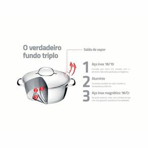 Mais Informações - Mais saudável: por ser feita de aço inoxidável, a panela Tramontina não libera nenhum tipo de resíduo nas suas receitas.Fácil de usar: uma panela prática para todas as suas receitas e que faz bonito em qualquer tipo de fogão: gás, elétrico, vitrocerâmico e indução. Ainda possui tampa com saída de vapor e encaixe perfeito.Mais durável: o inox Tramontina é uma matéria-prima nobre, resistente e que vai fazer bonito por muito mais tempo na cozinha.Economiza tempo e energia: o segredo está no fundo triplo (aço inox + alumínio + aço inox), que distribui o calor uniformemente, proporcionando um cozimento mais rápido. Por isso, você pode manter o fogo baixo durante todo o preparo e, assim, poupar energia. Além disso, a panela toda em aço inox pode ir ao forno para gratinar ou finalizar pratos, na temperatura máxima de 260C.Fácil de limpar: deixar sua panela brilhando é simples, você só precisa de água, sabão e uma esponja macia. Se preferir, é só colocar na máquina de lavar.