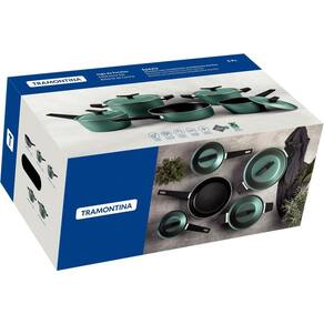 O Jogo de Panelas Tramontina Antiaderente Spezia 5 Peças Verde oferece qualidade e praticidade excepcionais. Composto por frigideira funda, caçarolas e panelas, possui revestimento antiaderente que facilita o preparo e a limpeza. Feito em alumínio durável, com tampas seguras e cabos confortáveis, é compatível com diversos tipos de fogões. Ideal para quem busca eficiência e estilo na cozinha. Características: Marca: Tramontina Código do Fabricante: 28399230 Linha: Spezia Cor: Verde Material: Alumínio Antiaderente: Sim Fogões Compatíveis: Gás, elétrico e vitrocerâmico Conteúdo: 1 Caçarola 20cm 2.3L, 1 Caçarola 20cm 4.3L, 1 Frigideira Funda 24cm 2.8L, 1 Panela 18cm 1.9L e 1 Panela 16cm 1.2L Material da Tampa: Alumínio Compatível com Micro-ondas: Não Compatível com Lava-louças: Não Pode ir ao Forno: Não Ean: 7891112335011