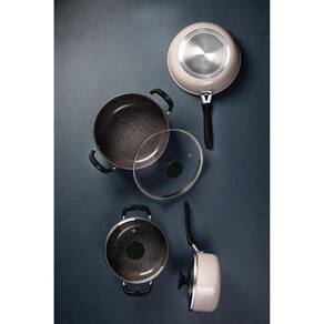 Descubra o equilíbrio perfeito entre eficiência e design com o Jogo de Panelas Tramontina Tunis em Alumínio com Revestimento Cerâmico e Externo Siliconado. Projetado para oferecer o máximo de conveniência e segurança na cozinha, este conjunto é a escolha ideal para quem busca otimizar o preparo de suas refeições sem abrir mão da estética. O revestimento interno cerâmico antiaderente assegura um cozimento uniforme e facilita a limpeza, enquanto o revestimento externo siliconado adiciona um toque de cor e proteção extra. Os cabos metálicos com proteção em silicone minimizam a propagação de calor, garantindo uma empunhadura mais segura e confortável. Este versátil conjunto é adequado para uso em fogões a gás, elétrico, indução e vitrocerâmico. A tecnologia do fundo de indução permite um cozimento mais rápido e seguro, elevando a experiência culinária. Para sua comodidade, todas as peças podem ser lavadas na máquina de lavar louças, simplificando ainda mais a sua rotina. Com o Jogo de Panelas Tramontina Tunis, você estará equipado para criar pratos deliciosos com facilidade, fazendo de cada refeição um momento especial. Características: Marca: Tramontina Código do Fabricante: 28799410 Linha: Tunis Cor: Rosa Trufado Material: Alumínio Material da Alça/Pegador: Silicone Revestimento Cerâmico: Sim Fogões Compatíveis: Gás, elétrico, vitrocerâmico e indução Conteúdo do Jogo: 1 Caçarola 20cm 3L, 1 Caçarola 24cm 5L, 1 Frigideira funda 24cm 2.9L e 1 Panela 18cm 2.1L Compatível com Lava-louças: Sim Material das Tampas: Vidro temperado Saída de Vapor: Sim Ean: 7891112334335
