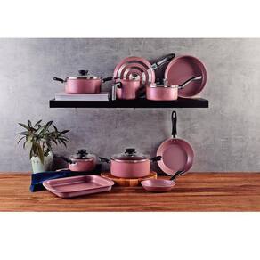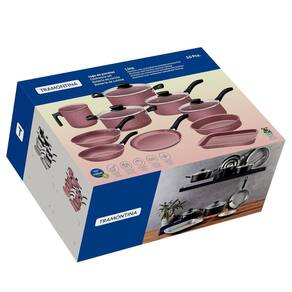 Jogo de panelas tramontina linz 10pçs rosa 28299407 dê um toque de charme e funcionalidade à sua cozinha com o jogo de panelas tramontina linz em alumínio com revestimento interno e externo em antiaderente starflon max rosa 10 peças. Produzidas para otimizar sua rotina na cozinha, suas peças garantem cozimento rápido e uniforme sem grudar, pois são feitas em alumínio com revestimento interno e externo em antiaderente starflon max. Com tampas em vidro temperado com bordas de aço inox, elas permitem acompanhar o preparo dos alimentos de perto e tornam o preparo das suas receitas muito mais fácil. Para sua segurança, seus cabos e alças são em baquelite e os pegadores de nylon, ambos materiais que não aquecem. Além disso, as peças são compatíveis com fogões a gás, elétricos e vitrocerâmicos, além de poderem ser lavadas na máquina de lavar louças, tornando seu dia a dia na cozinha muito mais prático e eficiente. Transforme suas experiências culinárias com a elegância e funcionalidade, para isso, escolha o jogo de panelas tramontina linz rosa Conteúdo Frigideira 16cm Frigideira 20cm Panquequeira 22cm Caçarola 20cm Caçarola 18cm Panela 14cm Panela 16cm Assadeira rasa 28 cm Assadeira redonda 22cm Fervedor 12cm