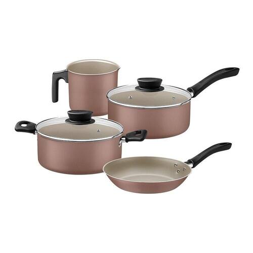 Jogo de Panelas Tramontina Linz 28299304 Mocaccino - Características Gerais do Produto: Dimensões AxLxP mm : Caçarola 18cm, Fervedor 12cm, Frigideira 18cm, Panela 16cm Material: Alumínio e baquelite Pegador / Cabo: Baquelite Antitérmico e Nylon Revestimento Interno: Antiaderente Tecnologia da Panela: Starflon Max Linha: Linz Capacidade da Panela: Caçarola 2L, Fervedor 1,1L, Frigideira 0,6L, Panela 1,4L Pode ir à Máquina de Lavar Louças: Sim Tampa: Vidro temperado com saída de vapor Tipo de Fogão: Gás, elétricos e vitrocerâmicos resistência elétrica Acompanha o produto: 1 Caçarola 18cm 2L 1 Fervedor 12cm 1,1L 1 Frigideira 18cm 0,6L 1 Panela 16cm 1,4L : 90 dias junto ao fabricante Marca: Não Informado